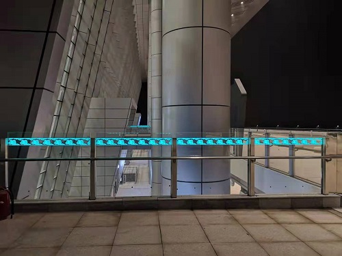 國慶期間,由江蘇新睿陽玻璃科技有限公司研發、福坤玻璃聯合制造的“LES月光玻璃安裝在連云港花果山機場護欄桿上,熠熠生輝,炫彩分明。