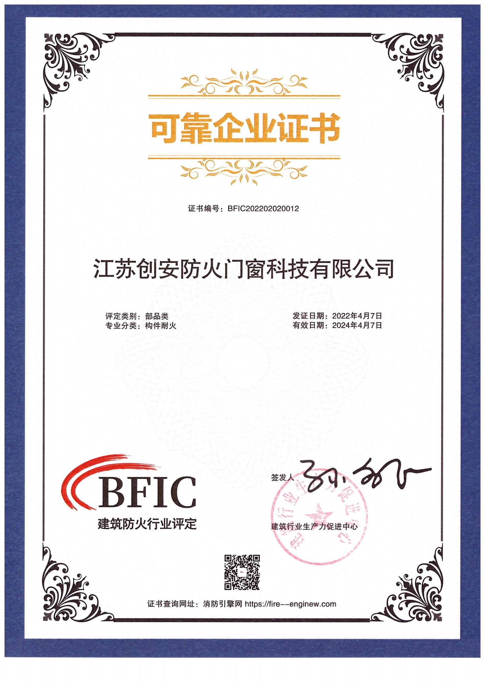 洪愛萍總經理獲頒“中國建筑學會防火綜合技術分會理事”,創安防火門窗獲頒“建筑防火可靠企業”證書,洪愛萍總經理參與簽署了建筑防火行業可靠企業倡議。