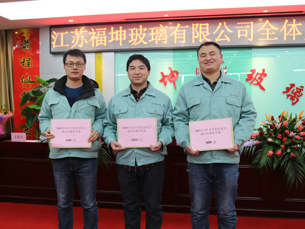 為推進企業(yè)文化建設,豐富員工業(yè)余生活,凝聚員工團隊意識,提高員工工作技能,公司將12月定為企業(yè)文化活動月,開展了摜蛋比賽、隊列比賽、捆玻璃技能比賽、拔河比賽、推選“賢內(nèi)助”、收集金點子、座右銘、2016年心愿、舉辦元旦聯(lián)歡會等一系列活動。活動自開展以來,廣大員工積極支持并參與,在部分比賽中取得了優(yōu)異的成績!